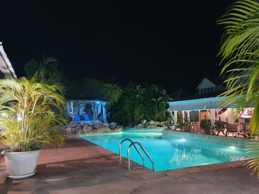 "Michel, le propriétaire, est adorable, serviable, de bons conseils et disponible. Il s’agit d’une ancienne maison privée, mais c’est grand, on entend pas les voisins! J’étais dans la chambre Marie-Galante à l’étage et j’étais très bien. La piscine est superbe. On est au calme. On se tutoie et on parle facilement avec les autres clients. Petit briefing en arrivant pour conseils sur visites, restaurants etc Le rapport qualité prix est très appréciable. Il n’y a pas de restaurant mais Michel a la solution : un traiteur vous livre à l’hôtel."